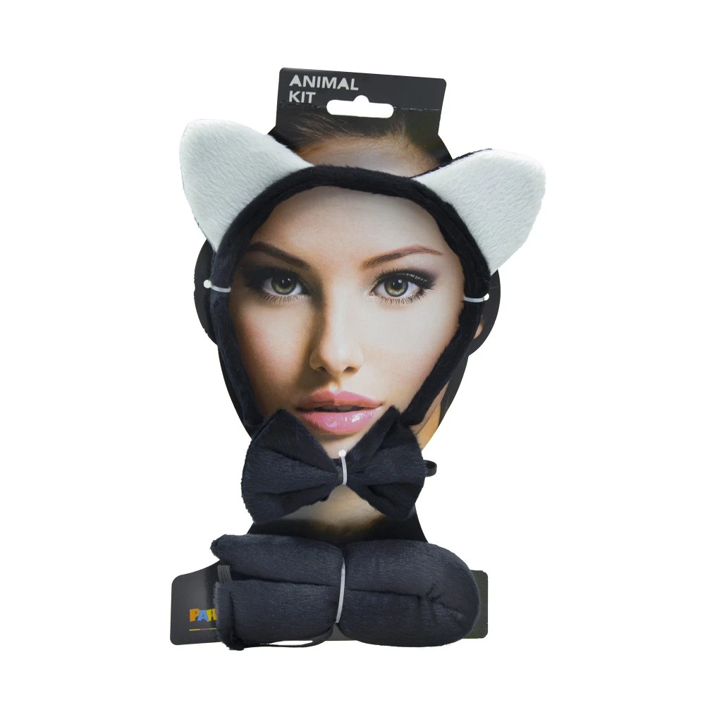Katzenset für Kinder, enthält einnen Haarreif, eine Fliege und ein Katzenschwänzchen.