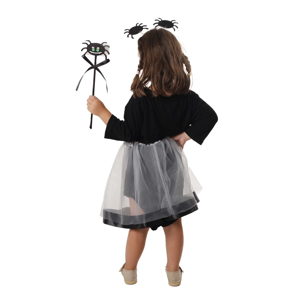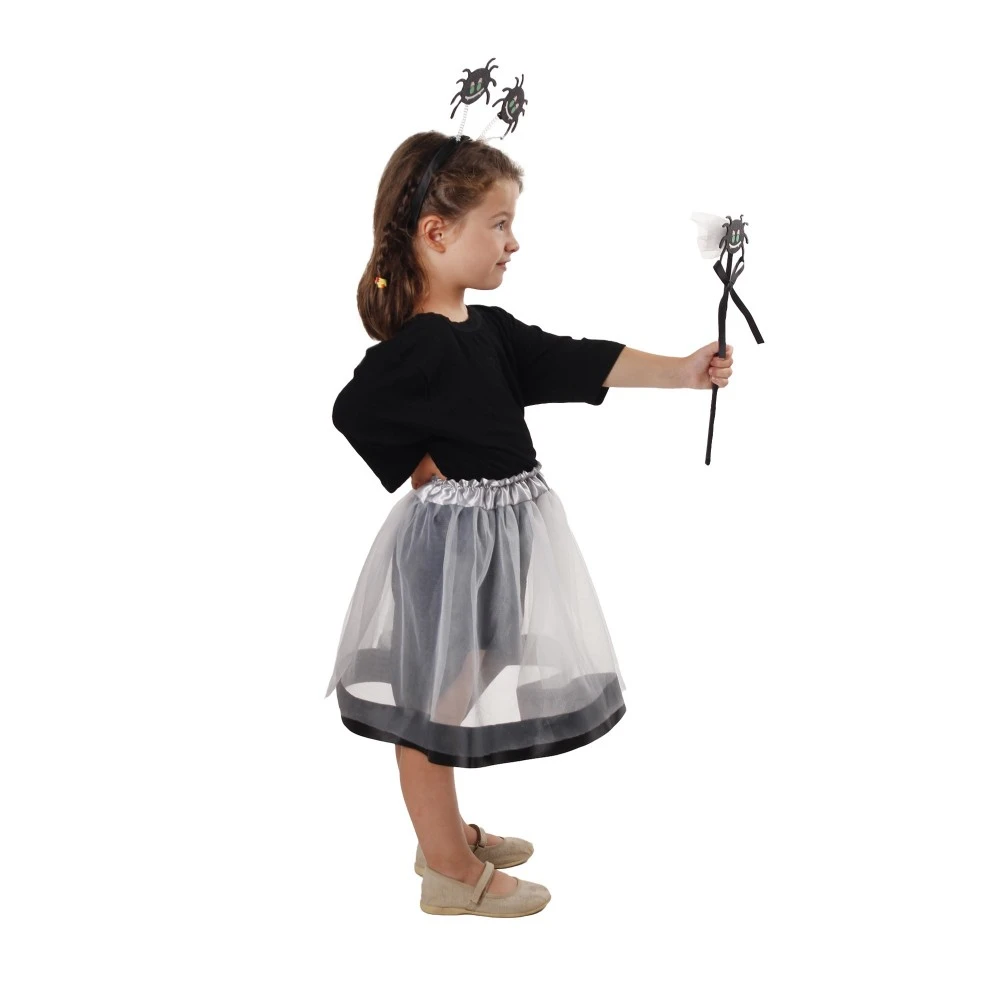 Wenn sich dein Kind an diesem Halloween in eine böse Hexe verwandeln will, solltest du keine Zeit mit der Suche nach dem Zubehör verschwenden und dieses Set kaufen! Es besteht aus einem schwarzen Tüllrock, einem Zauberstab mit einer Spinne am Ende und einem Haarreif mit zwei süßen kleinen Spinnen.