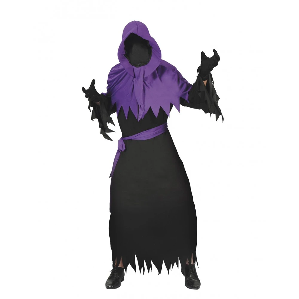 Verwandle dich in ein Gespenst der Nacht und genieße Halloween versteckt hinter der Maske dieses schwarz-lilafarbenen Schattenkostüms für Männer. Dieses Kostüm in Einheitsgröße besteht aus einer langen schwarzen Tunika, einer Kapuze mit violetten Details und einem passenden Gürtel. Erschrecke alle deine Freunde aus der anonymen Dunkelheit mit diesem schwarz-lilafarbenen Schattenkostüm für Männer. Es besteht aus einer langen schwarzen Tunika, einer Kapuze und einem lila Gürtel. Die Kapuze hat auch einen schwarzen Schleier, der das Gesicht bedeckt.