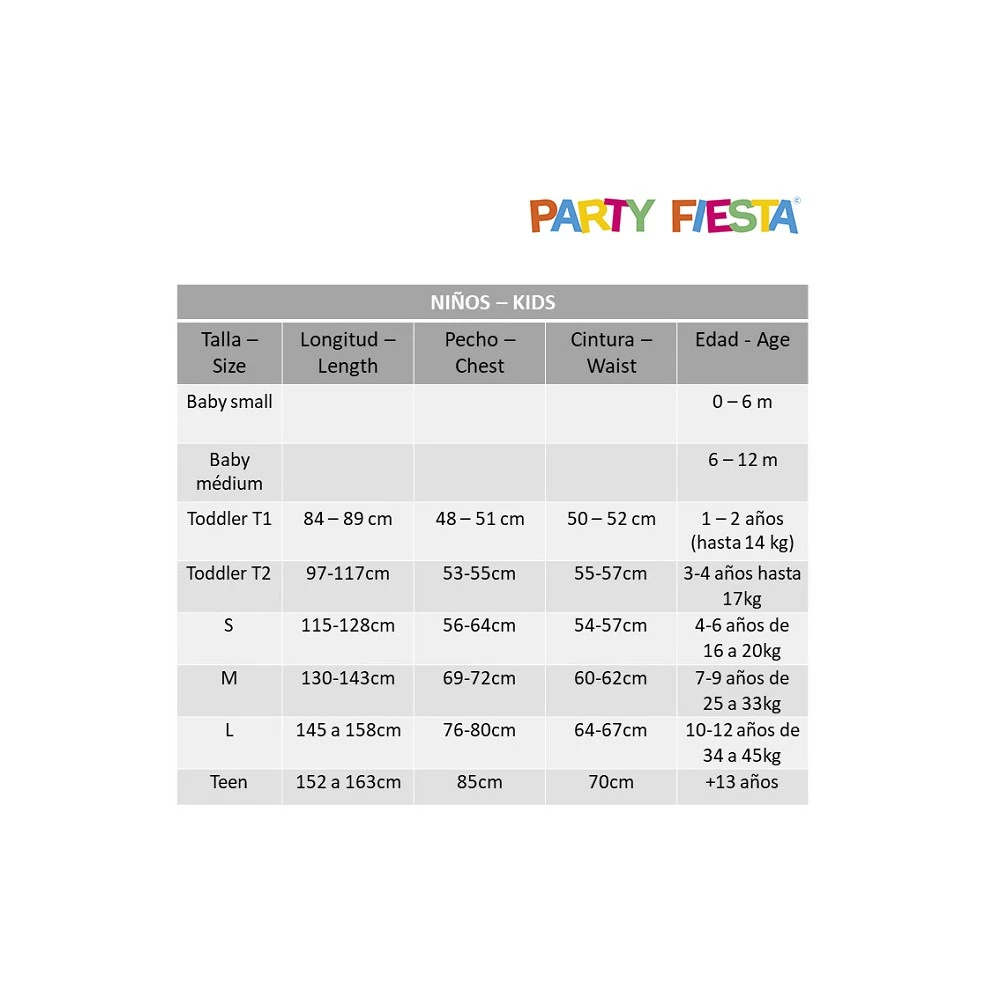 | Wähle eine größe | 5-6 años, 7-9 años, 10-12 años |